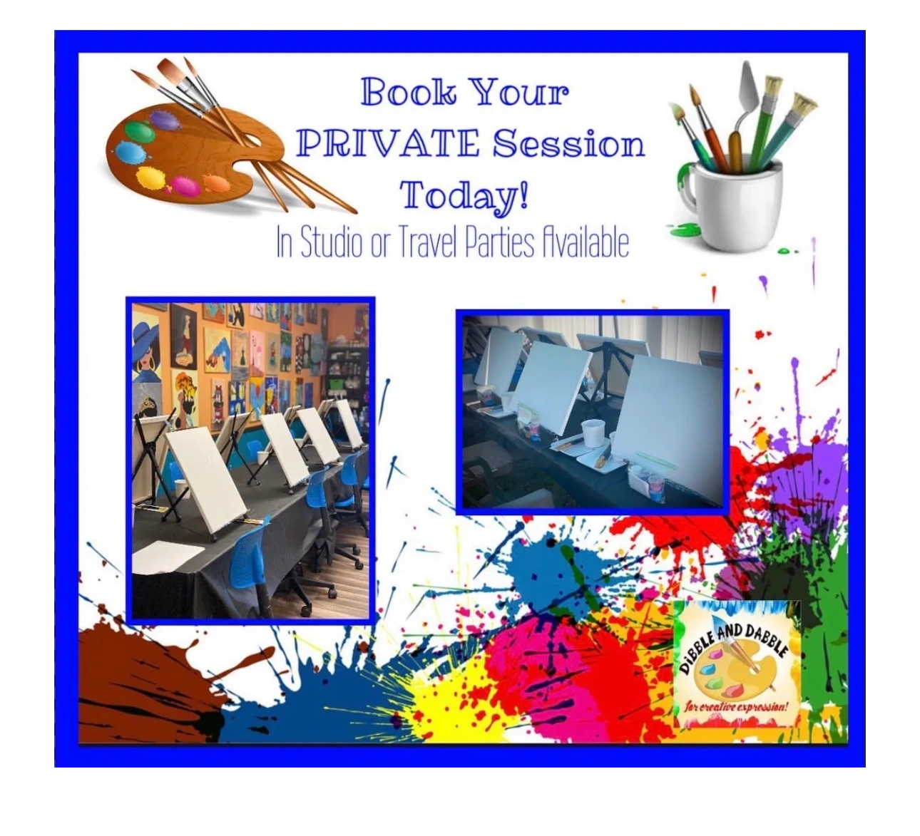 Dibble and Dabble will bring the creativity to you. You pick the painting, we provide the supplies and materials for a fun filled event with friends and family.